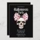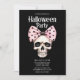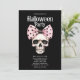 Skull Black Dots Bow Pink Horror Halloween Party Invitation