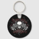 Jolly racing skull and crossbones with checkered flags on splatter.