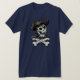 Design of a skull wearing a cowboy hat with the bones like those on pirate's flags.