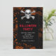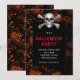 Skull Crossbones Orange Splattered Halloween Party Invitation