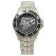 Has heft and feel of expensive stainless steel quartz watches. Good band with safety catch. I removed links, which is easy because engraved arrows show direction to push the linking pins. As always by this seller, the image (a railroad logo) is a perfect reproduction of my emailed image, and is precisely spaced and aligned.