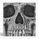 Skull face close up Gothic grunge black and white design recipe cookbook. Macabre, spooky, creepy, evil, sinister Recipes To Die For binder. Funny, cool, trendy, modern, unique, scary Halloween inspired kitchen home accessories. Image copyright Marg Seregelyi Photography.