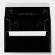 An envelope for a gothic wedding that’s black on the outside with a dark design on the inside. Simply customize the text, add these envelopes to your cart, then send out your invitations.