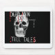skull image with words Dead Men DO Tale Tales with gunshot would to skull and words artistically written areound white skull on black background. Perfect gifts for Forensic scientists, CSI buffs, homocide detectives and all things Forensic.