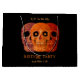 This gift bag features a funny orange black gothic pop art style Halloween Birthday Party RIP To His 20s Skull head design. Fun, spooky 30th birthday. Three skulls design with googly eyes. Trendy, unique, scary, modern. Image copyright Marg Seregelyi Photography.
