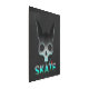 Skull Graffiti Skater Cat, The mischievous urban super hero, Ska Punk cool cat Ferzio, atop a neon glowing Skate billboard sign spray painting some graffiti of a cat skull.