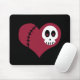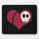 This skull heart design features a cartoon skull with hearts in its eyes on a reddish pink stitched up heart!
