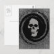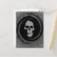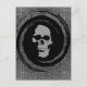 A lone gray skull sits in a swirling black void on a static looking gray background.
