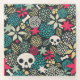Skull in flowers glass coaster