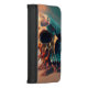 A large skull sits on top of the sand in the ocean, in the style of surreal 3d landscapes, intense color palette, redshift, vibrant illustrations, photo-realistic landscapes, textural explorations