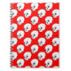 A pattern of white skulls on a red background. Original design with newsprint effect. Black, white and red cartoon image.