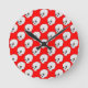 Skull Pattern On Red Background Round Clock