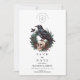 A dramatic composition featuring a black raven perched atop a human skull nestled in winter pine and berries. This haunting yet refined design blends gothic flair with seasonal elegance, perfect for alternative winter weddings with dark, poetic vibes.