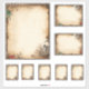 Fun sticker set with a skull in a basket in one corner, coffee stained vintage background and a brown border frame with flowers, plants and small stuff.