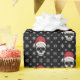 The perfect alt holiday wrapping paper with a skull with detailed santa hat set on a black background filled with snowflakes. See coordinating items in our shop, Enchanted Finch