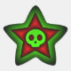 This unique skull star sticker has a green glowing skull set into the center of a ruby red star that glows too and is itself set in a black edged star sticker. A very cool looking design sure to please as a halloween giveaway or decoration or for those who like goth fashions.