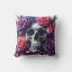 Skull Surrounded by Vibrant Roses Throw Pillow