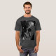 My 11 yo wore adult XL (5’7” 165#). The 8yo is small framed. She wore adult small and tied it in the back. Grandma wore adult large with long sleeve shirt underneath. Tall girl adult medium. Dark haired male adult large. Good quality dark Heather gray, Gildan brand shirt. -it was next up from basic choice and cost about $20 per shirt. Not too thick or thin. Washed and dried well, no major shrinkage. Not see-through. Can wear a bra under it fine. Screen print is just as shown and well done, front and back.
