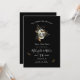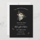 Hauntingly beautiful save the date invitation with Till Death Do Us Part saying and skull with butterflies and ferns on a black background. Perfect for a gothic or Halloween wedding. See our other gothic wedding ideas as well.