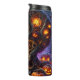 This spooky Halloween scene features a monstrous tree with a skull-shaped trunk and glowing eyes. Pumpkins with eerie faces are nestled at its base and grow from its branches. Bats and glowing moths flutter around in a dark, moonlit forest, creating a whimsical and gothic atmosphere.