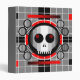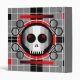 Cool retro TV testcard pattern inspired design featuring a stylised skull and crossbones in shades of black, white, grey and red. A customizable design for you to personalise with your own text, images and ideas. An original digital art image created by Jess Perry.