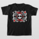 Cool retro TV testcard pattern inspired design featuring a stylised skull and crossbones in shades of black, white, grey and red. A customizable design for you to personalise with your own text, images and ideas. An original digital art image created by Jess Perry.
