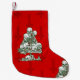 Perfect! Exactly what I ordered! I uploaded a picture of my blue chow, and the screen print was incredible. the back side of the stocking was the red and black checkered print. my puppy's name was also printed on the cuff of the stocking. PERFECT! Highly recommend this product! My puppy's name was screen printed onto the cuff of the stocking, the font was perfect!