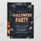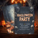 A bold Halloween invitation adorned with skulls and spiderwebs, perfect for setting a thrilling and spooky party mood.