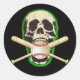 SKULL WITH BASEBALL AND BATS CLASSIC ROUND STICKER