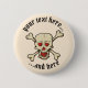 Beige skull cartoon sketch with hearts. Two text fields on circle.