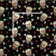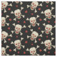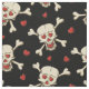 Beige skull cartoon sketch with hearts. Seamless pattern. Custom background color.