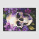 Watercolor artwork featuring a human skull surrounded by purple flowers against a black background.