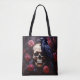 A human skull is surrounded by red roses, and visited by a raven on this fabulous Goth tote bag. Dark, haunting, and oh-so-beautiful!