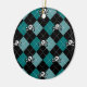 Two tone blue argyle design accented with skulls.