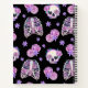 Perfect Halloween pattern featuring skulls and ribcages decorated in purple roses.