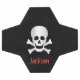 This design features a skull and crossbones on a black background.