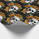 Skulls and Orange Flowers on Black Wrapping Paper