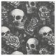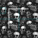 A Gothic Skulls and Roses Halloween themed fabric. Design features skulls and roses on black background. Fabulous gothic pattern for home decor, crafting or sewing and quilting projects.