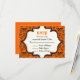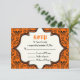 Skulls damask orange black pattern Halloween wedding RSVP card. This formal, elegant design features a damask floral and skull pattern and an ivory frame in the center. Classic, yet contemporary design with two fonts: a vintage and a cool one. Elegantly spooky design, perfect for Gothic or Halloween fall weddings.