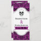 Skulls damask purple, black pattern & banner Halloween wedding ceremony program. This elegant design features a damask floral and skull pattern, a frame in the centre, a black skull and a purple banner. A contemporary yet classy design with a vintage style font. Elegantly spooky design, perfect for Gothic or Halloween fall/autumn or winter weddings. It is a fully customizable template and is part of a wedding set.