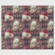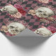 Skulls with Roses and Pink Purple Checkered Wrapping Paper