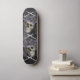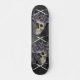 Edgy and cool skateboard deck! Black and grey stormy look background, Silver/grey detail and skulls in a purple haze of black roses!
