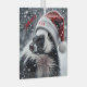 A striped skunk looks festive in a red Santa hat.