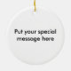 Lightweight, smooth, pure white ornament with nice sheen. Perfect size to be seen from across the room ... and to attract closer inspection! Price was great for ordering enough for the whole family! Clear, bold black design just as requested. Matches the order exactly. Just so nice!
