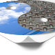 Pristine blue sky with pure white clouds against industrial metal. Life is full of opposites and this design keeps them in perspective.