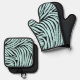 Sky Aqua Blue Black Zebra Print Oven Mitt & Pot Holder Set