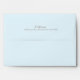 Sky Blue envelope with gradient pink inside to compliment matching wedding invitation set. Personalize return address on back flap.