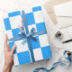 Sky Blue and White Checkerboard Pattern Wrapping Paper