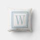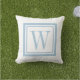Sky Blue and White Classic Square Monogram Outdoor Pillow