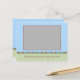 Modern baby boy birth announcement in blue, brown and green. Customize this card template with a photo to the front and the stats to the back.